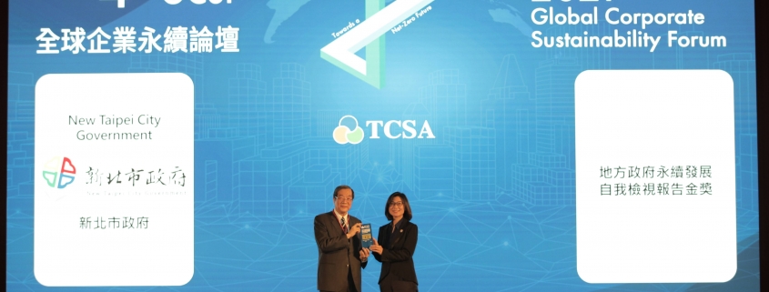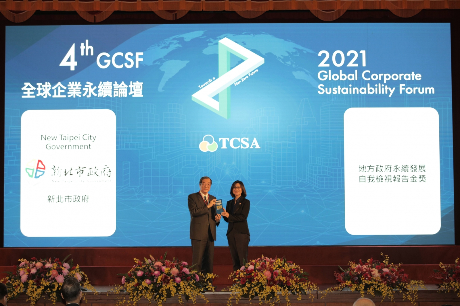 有臺灣永續獎奧斯卡之稱的「TCSA臺灣企業永續獎」,由財團法人臺灣永續能源研究基金會自2008年起舉辦,旨在倡議企業社會責任理念、表揚企業善盡社會責任、提升台灣各界社會責任水準及永續議題之落實層面、鼓勵台灣各界全面性關注企業社會責任與永續議題。頒獎典禮於11月17日在圓山大飯店舉行,今年首度增設「地方政府-永續發展自我檢視報告獎」,新北市就以第一本VLR奪下「金獎」。